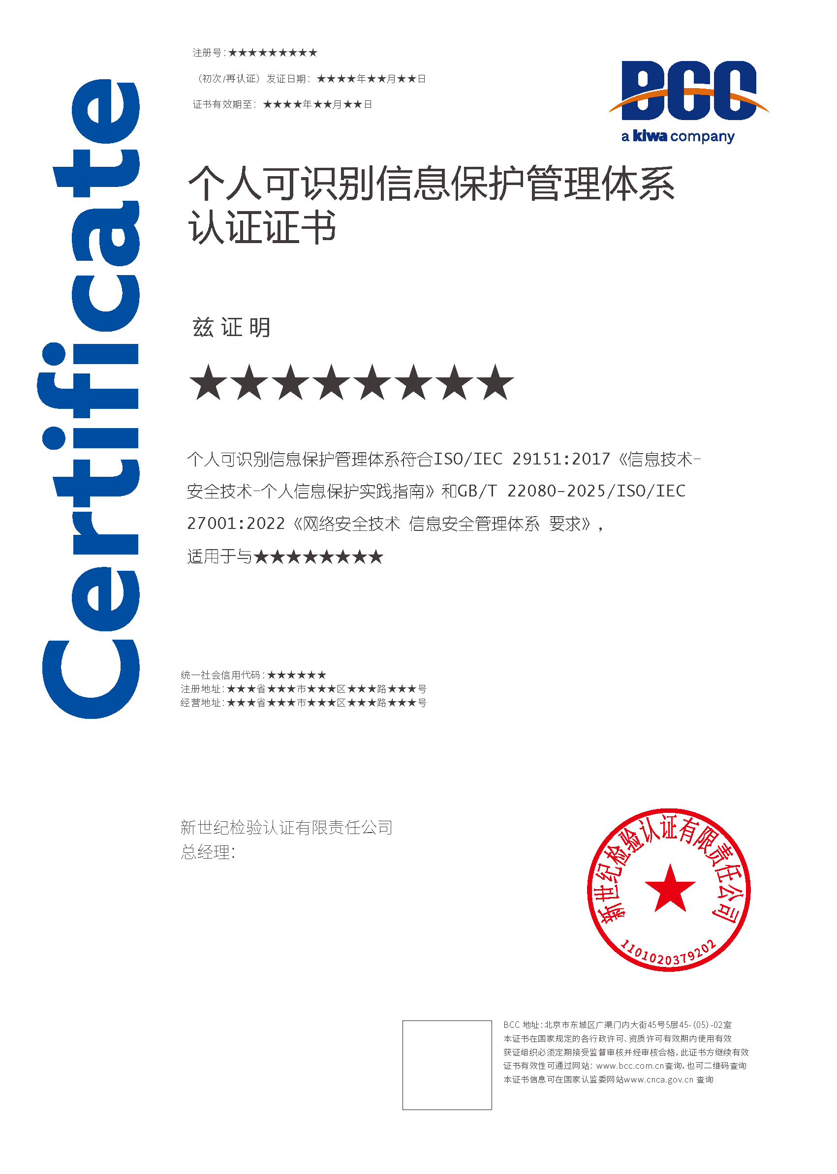本頁涉及的認證服務中均有對應的《認證實施規(guī)則》,BCC擁有其最終解釋權。任何組織及個人未經(jīng)BCC許可,不得以任何形式全部或部分使用(法律要求除外)認證相關信息。如需獲取相關實施規(guī)則請用以下方式聯(lián)系獲取:電話:010-58579316 郵箱:fwjs@kiwa.cn