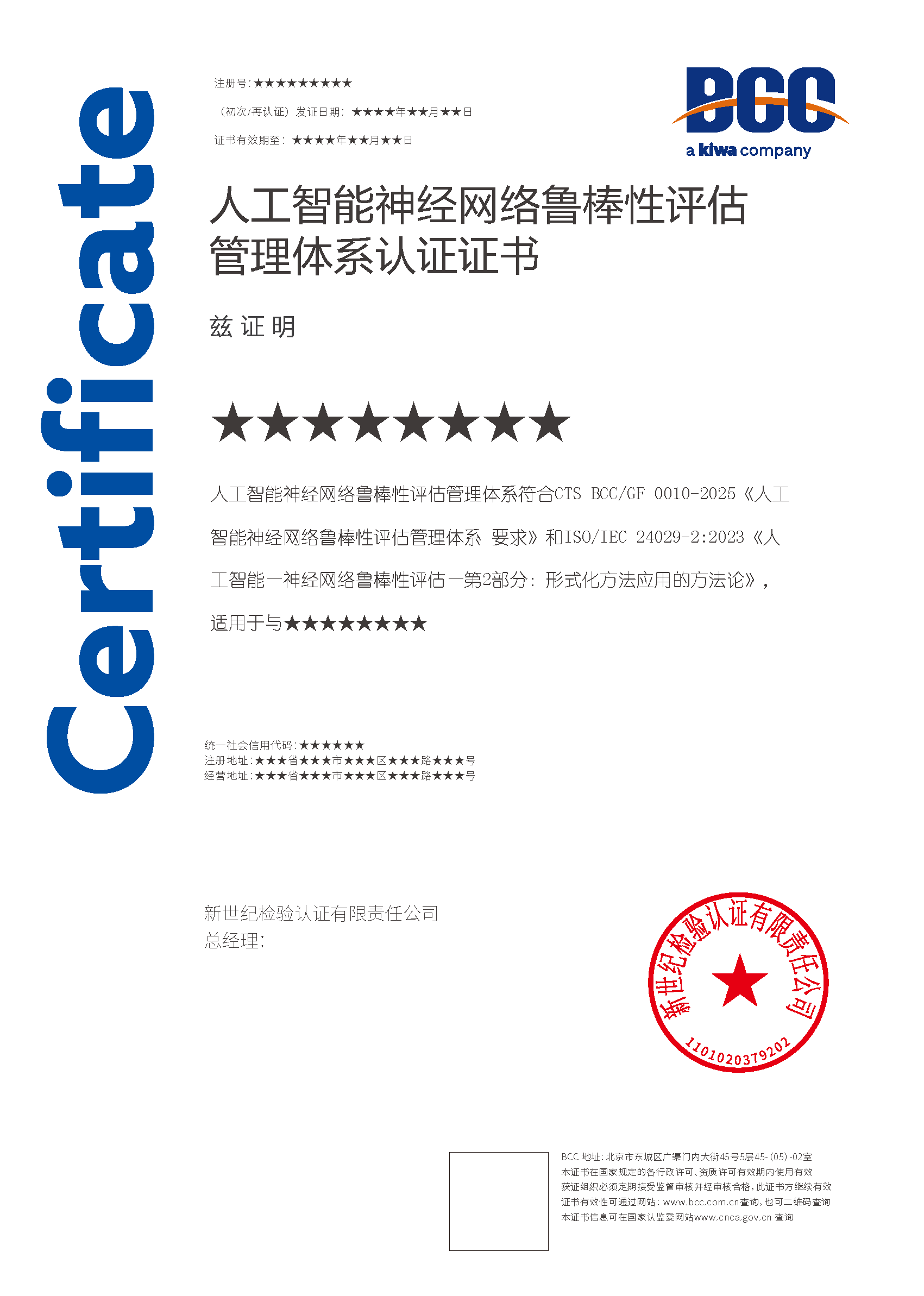 本頁涉及的認證服務(wù)中均有對應(yīng)的《認證實施規(guī)則》,BCC擁有其最終解釋權(quán)。任何組織及個人未經(jīng)BCC許可,不得以任何形式全部或部分使用(法律要求除外)認證相關(guān)信息。如需獲取相關(guān)實施規(guī)則請用以下方式聯(lián)系獲?。弘娫挘?10-58579316   郵箱:fwjs@kiwa.cn
