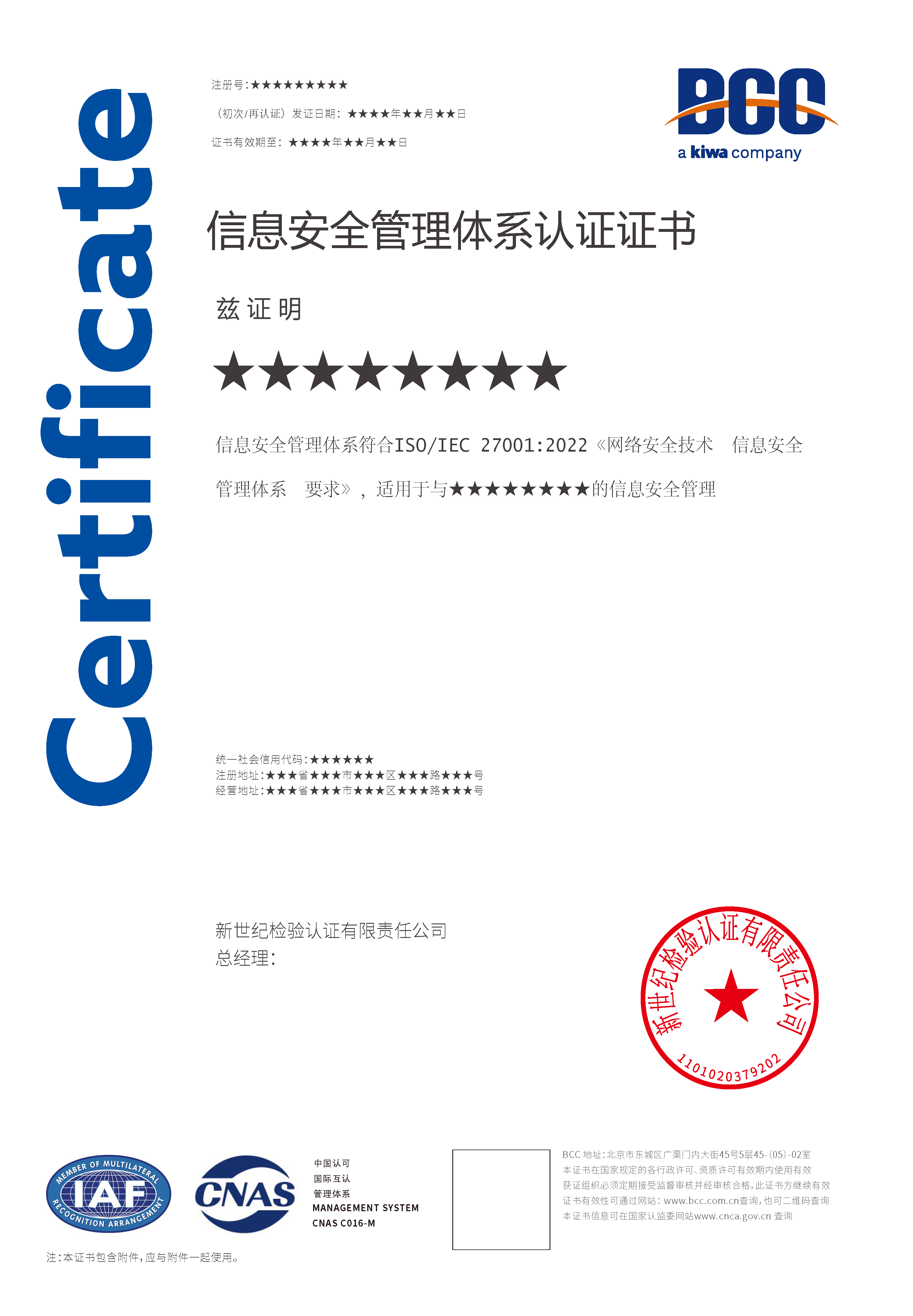 信息安全管理體系證書-CNAS 信息安全管理體系證書