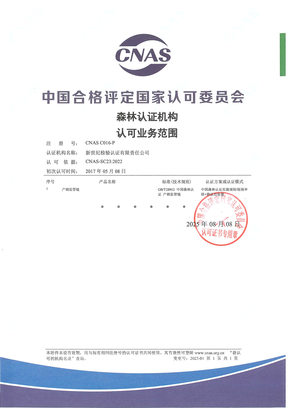 食品安全管理體系認證機構(gòu)認可證書(一) 良好農(nóng)業(yè)規(guī)范認可證書 信息安全管理體系認證機構(gòu)認可證書 森林認證機構(gòu)認可證書 信息技術(shù)服務(wù)管理體系認證機構(gòu)認可證書 能源管理體系認證機構(gòu)認可證書
